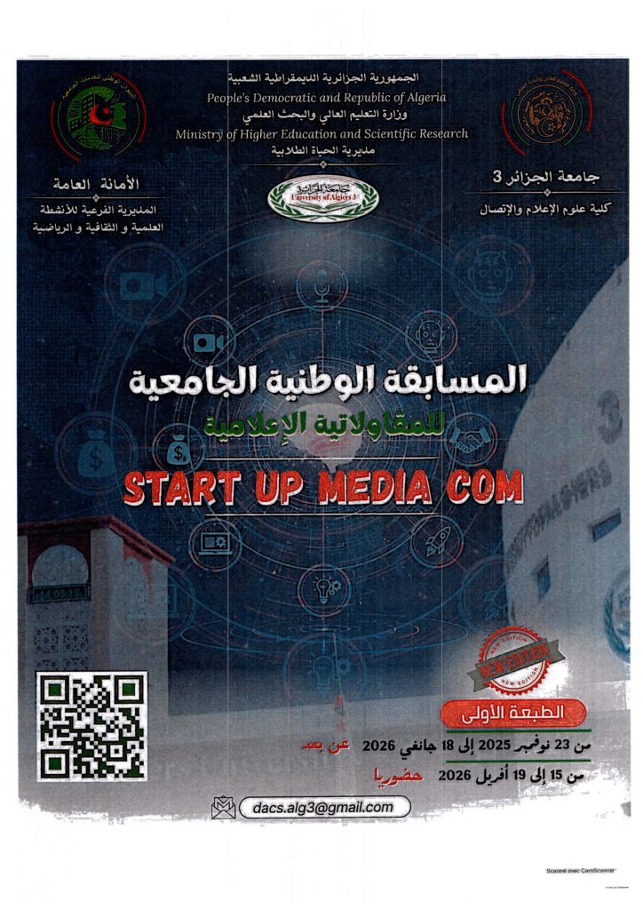 تعلم المديرية الفرعية للانشطة العلمية الثقافية و الرياضية جميع طلبة جامعة حسيبة بن بوعلي الشلف الراغبين في المشاركة و تمثيل