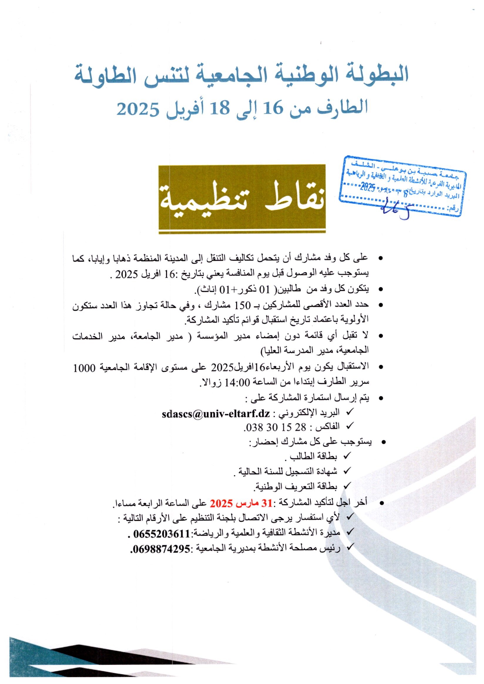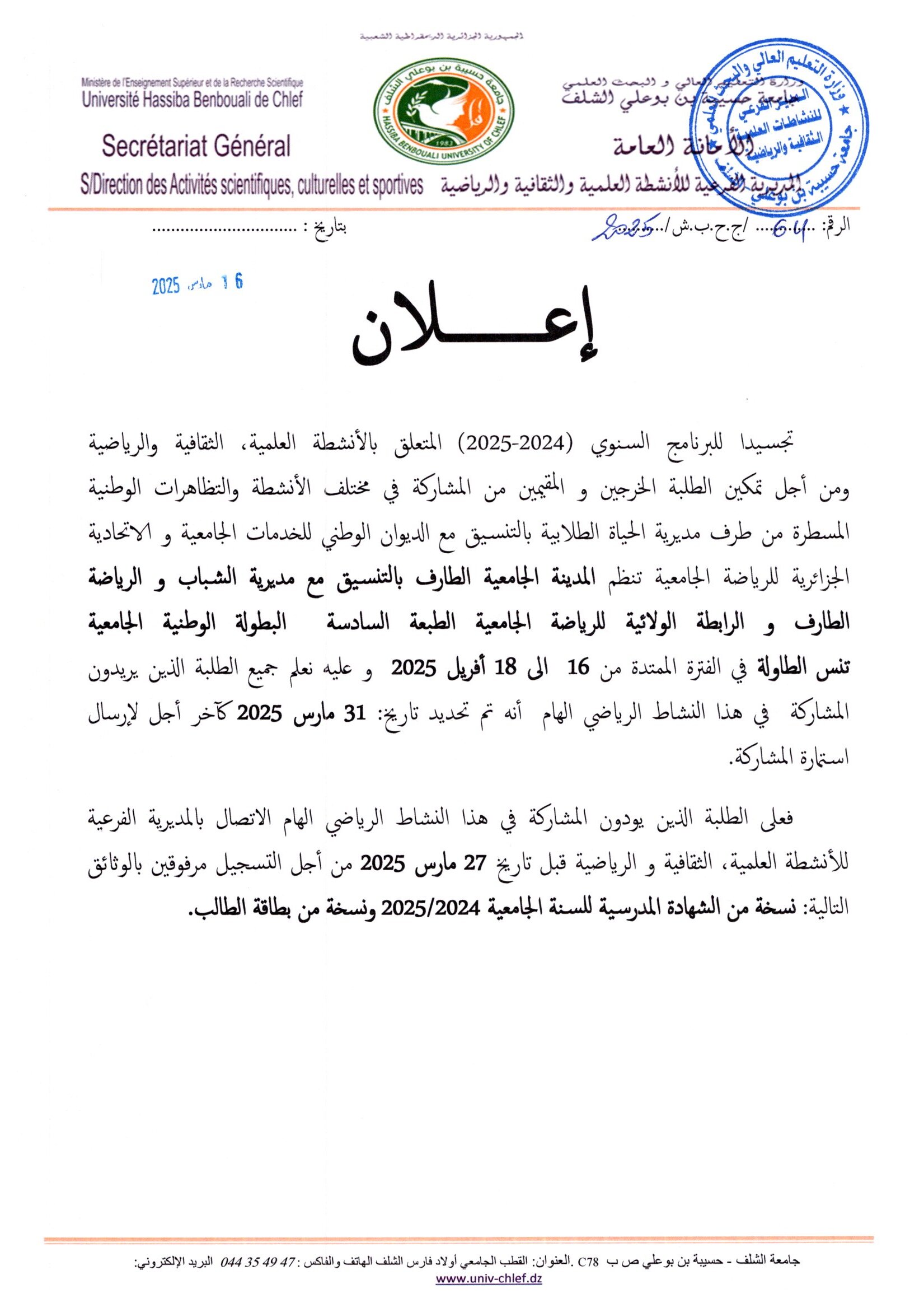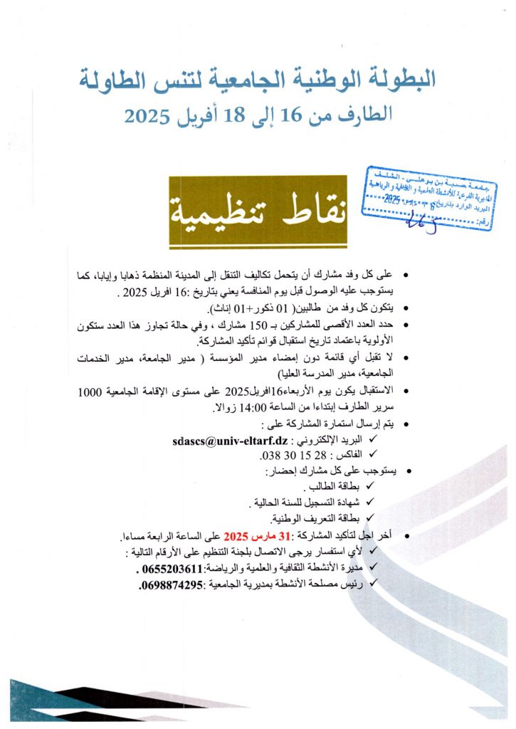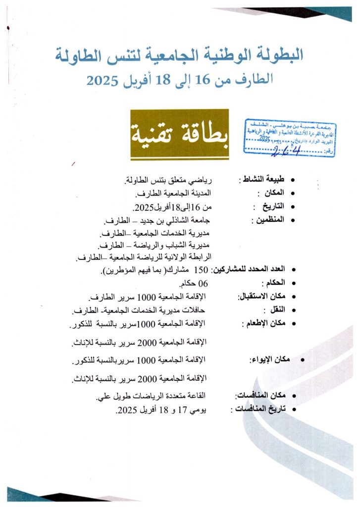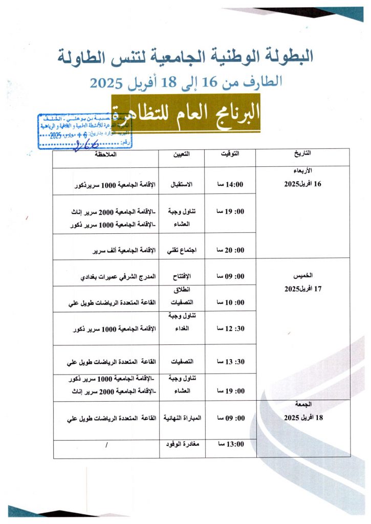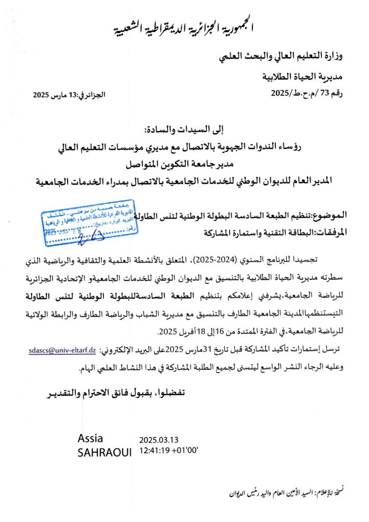 اعلان عن استشارة رقم 03/2025 عن طريق الإجراء المكيف تتعلق ب: خدمات الايواء و الاطعام و استراحة القهوة و الاستقبال