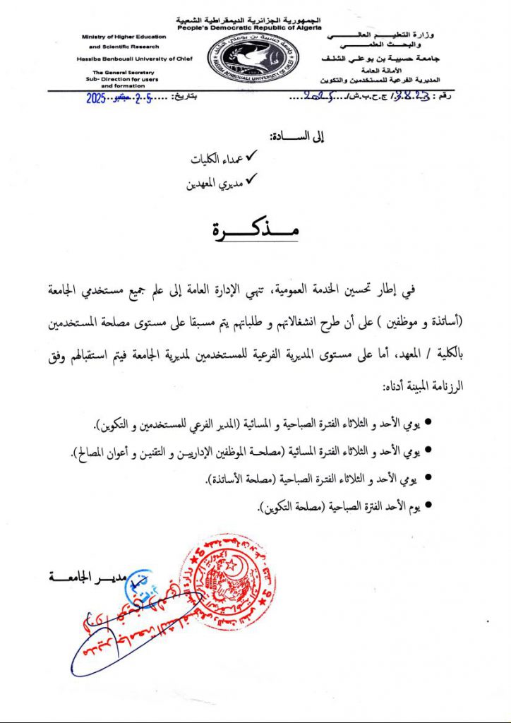 اعلان خاص الى جميع مستخدمي الجامعة “أساتذة و موظفين”