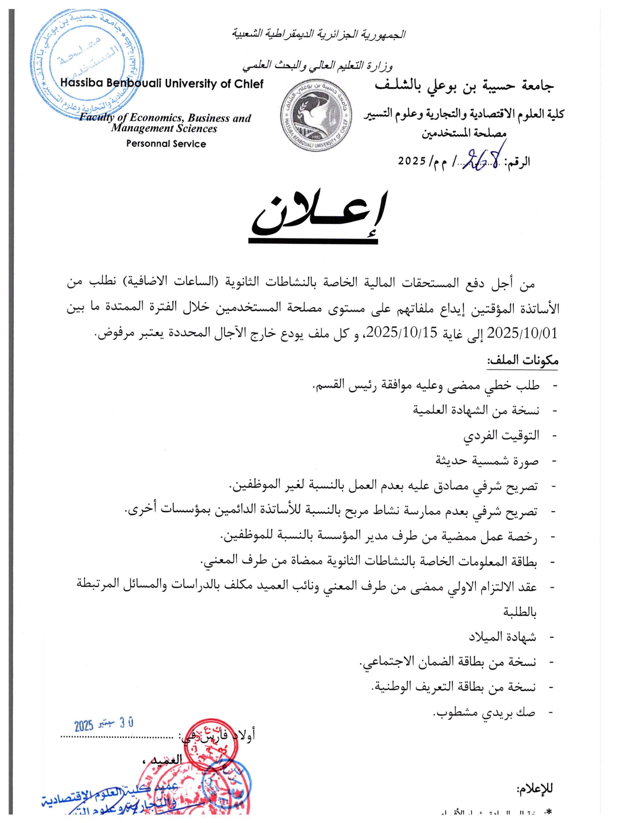 اعلان للأساتذة المؤقتين خاص بالساعات الاضافية