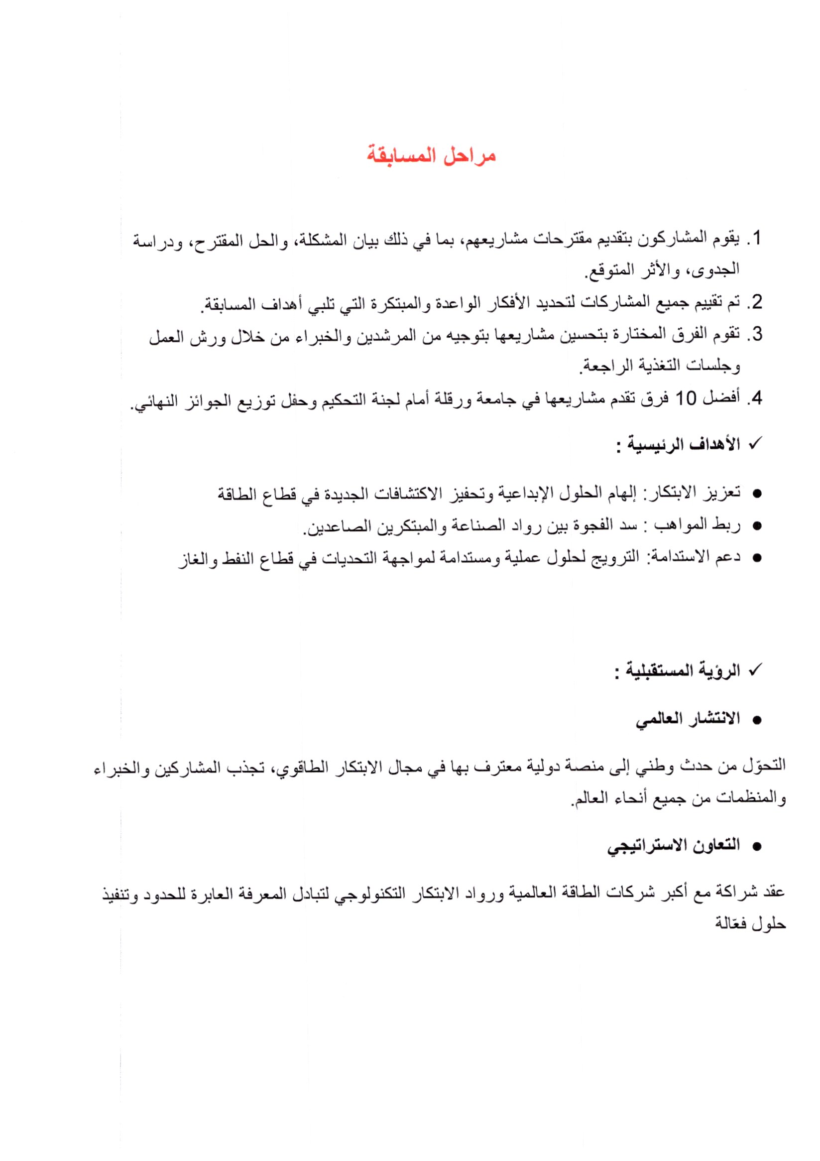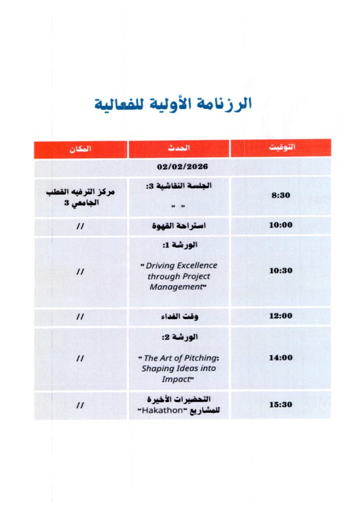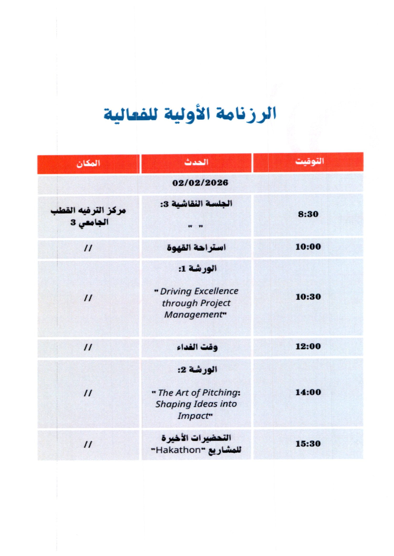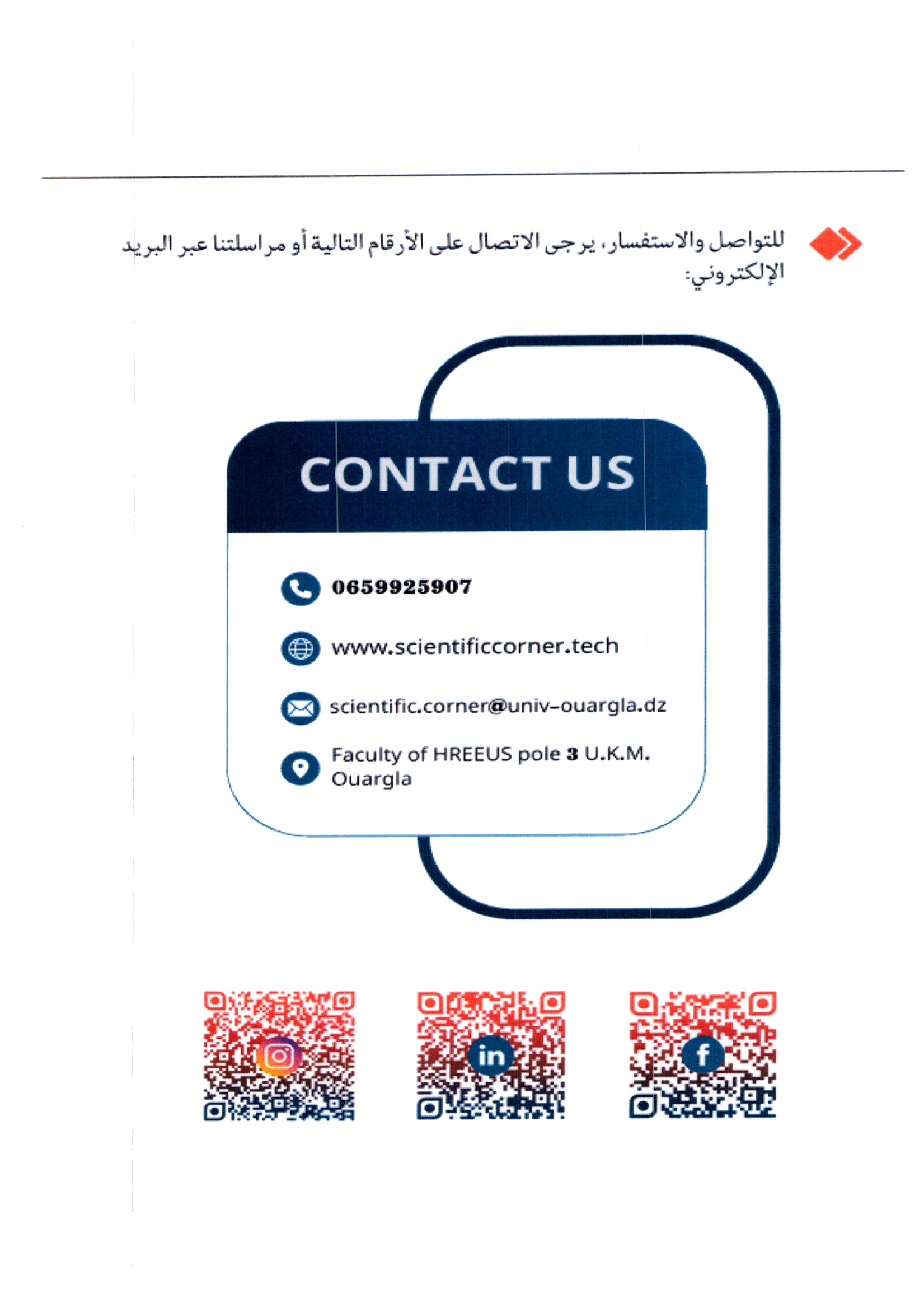 تعلم المديرية الفرعية للانشطة العلمية الثقافية و الرياضية جميع طلبة جامعة حسيبة بن بوعلي الشلف الراغبين في المشاركة و تمثيل الجامعة في المسابقة الوطنية الجامعية في الامن الطاقوي التقرب من مصالح الانشطة العلمية الثقافية و الرياضية على مستوى الكليات و المعهدين أو مقر المديرية الفرعية للانشطة العلمية الثقافية و الرياضية المتواجدة بمديرية الجامعة من أجل التسجيل قبل تاريخ 17 ديسمبر 2025 مرفوقين بالشهادة المدرسية للموسم الجامعي 2026/2025 .